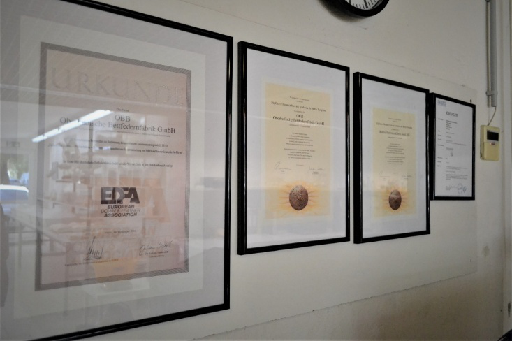 第二天早上9点,我们开始了对工厂的参观。企业负责人之一的Klöfer先给我介绍了企业的管理团队,至今为止,OBB董事长ErichSchweigert那句对自身品牌的评价依旧印象深刻—“高端床品造就睡眠和优雅之极的传统。”