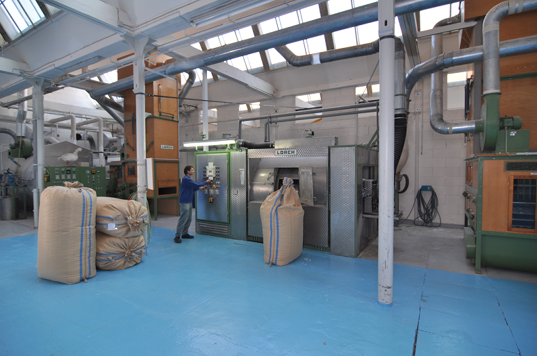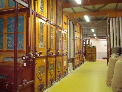 从实验室出来,就到工厂生产车间,吸引我们的是遍布并连接每个车间密密麻麻的管道。原材料就是通过这些管道利用风力在各个车间之间进行运输的。
