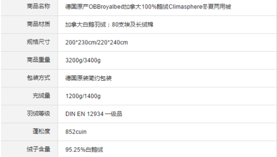 同比一下市场上的鹅绒被品,价格比OBB ROYAL BED高、品质却不如。